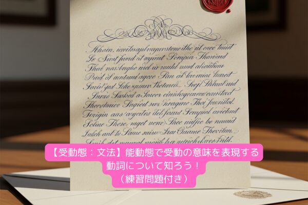 受動態は、英語の文法でとっても重要な表現方法です。能動態が「〜が〜する」と動作を行う側を主語にするのに対し、受動態は**「〜が〜される」**と、動作を受ける側を主語にする形です。